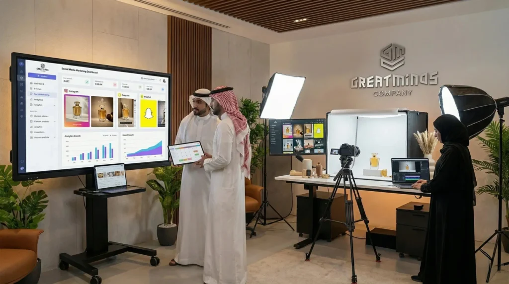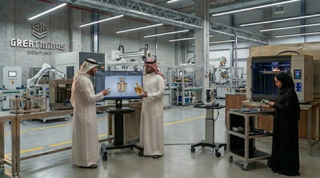 شريكك الاستراتيجي من الفكرة إلى السوق. في Great Minds، ندمج حلول التصنيع مع التسويق الإبداعي لخدمة عملائنا في الخليج. نرافقك من الرسم الأولي للمنتج حتى حملات التسويق الرقمي، لضمان نمو حقيقي لشركتك وعائد استثمار مضمون.